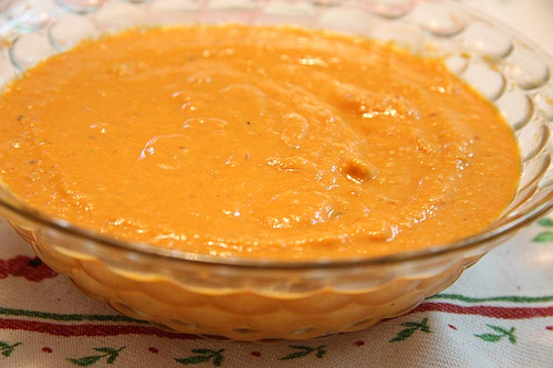 ¿Cuál es la textura correcta para obtener una buena salsa salvitxada? Pues muy sencillo, que quede como una salsa de tomate. Para comprobarlo, moved con las manos el recipiente dónde esté la salsa y comprobad que la salsa se adhiere a las paredes pero dejando pasar la luz o dejando una capa fina. Si por algún casual os quedara espesa, echadle más tomate y aliño, y a batir de nuevo.